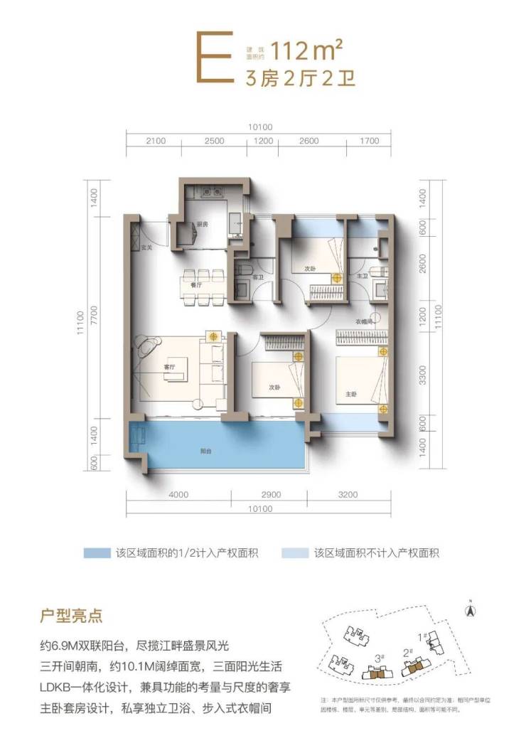 2. 一线江景+3.1容积率纯板楼,107-132㎡宽幕三房/四房,户户看江。灵活户型,满足刚需与改善多重需求,空间利用率高