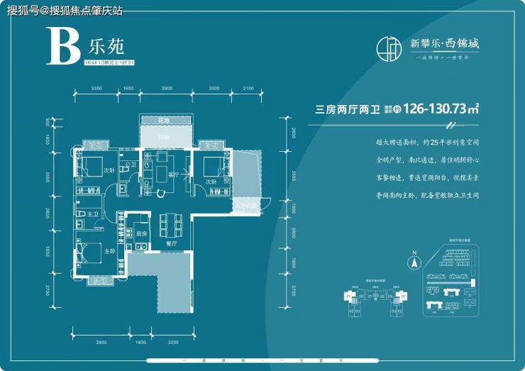 2#住宅楼户型为119㎡-146㎡三至四房。