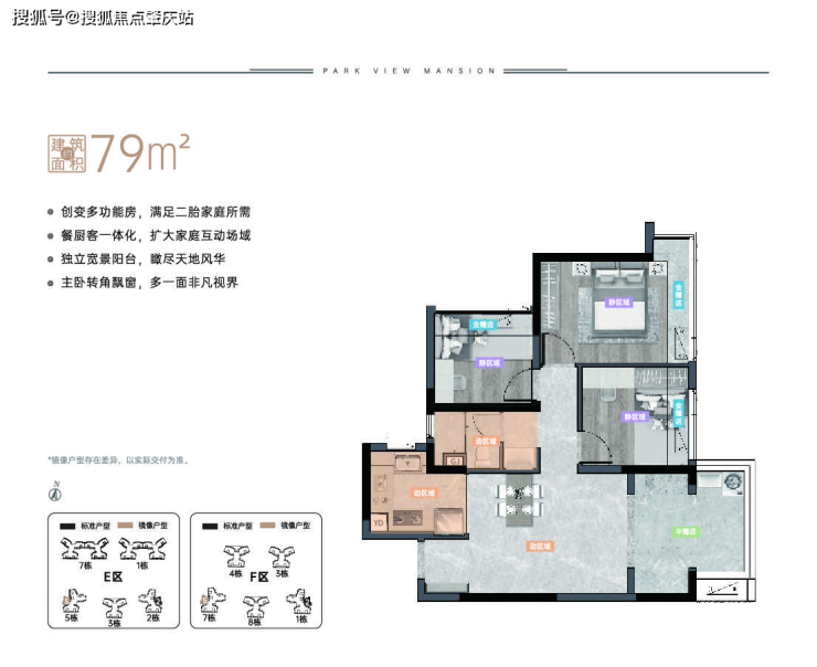 产品面积段:约79-89-105㎡三至四房