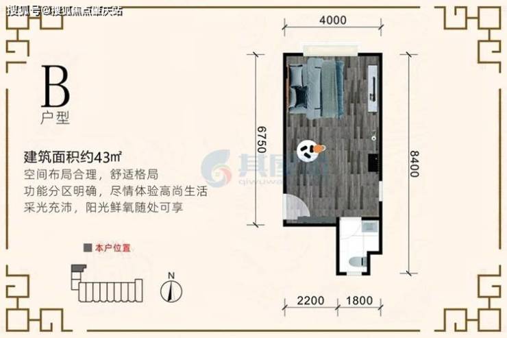 B户型图-建面约43.00㎡-开间
