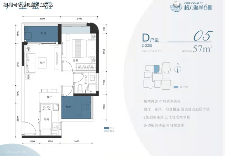 🔹D户型-约57㎡