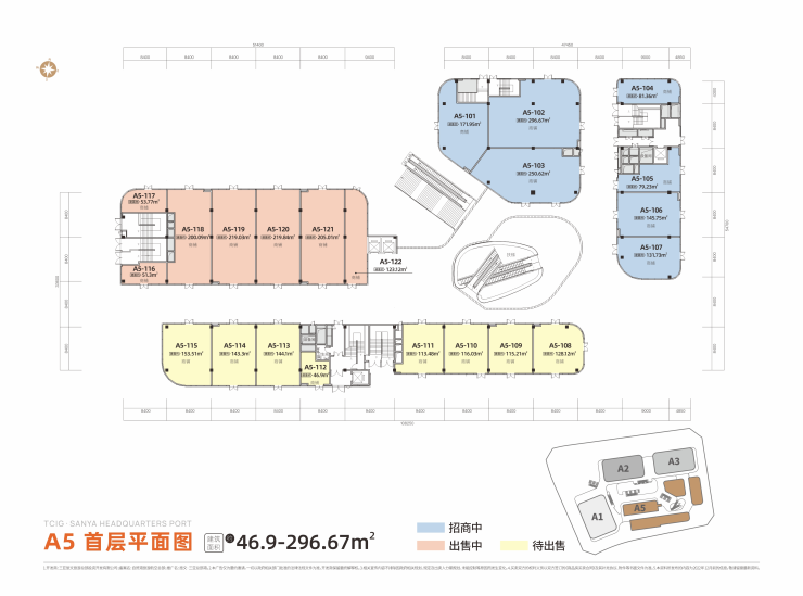 当前北区建面约328-348㎡ 5A办公空间、105-429㎡ 中央商务金铺,现房在售、同步招商