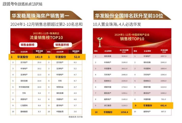 2024年1-12月珠海华发销售总额超过第2-10名总和