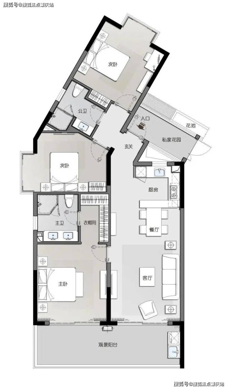 3栋低密纯板高层建筑,一字布局,南北通透,户户皆享超大观景阳台180°瞰海观山的极致视觉,海天山色尽收眼底。1.35绝版超低容积率只为成就223席高端舒适的完美胜境。