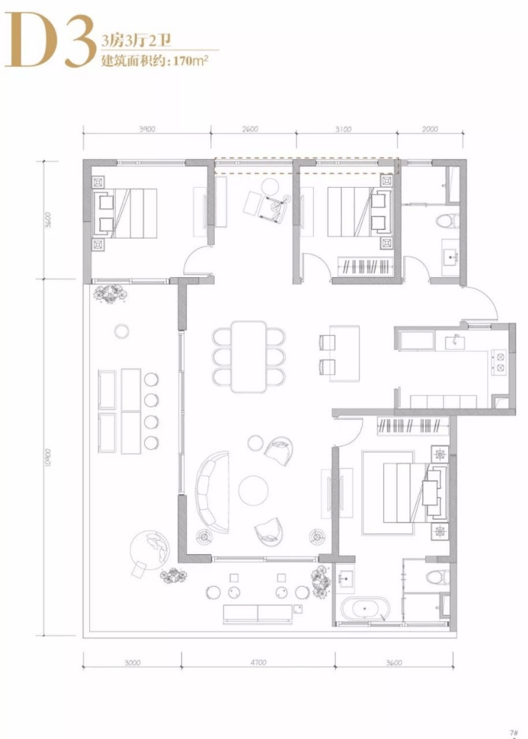距海约1500米,亲海不近海的宜人居住距离。低容积率,低密度,高绿化率,高得房率,超大尺度落地窗、观景阳台。