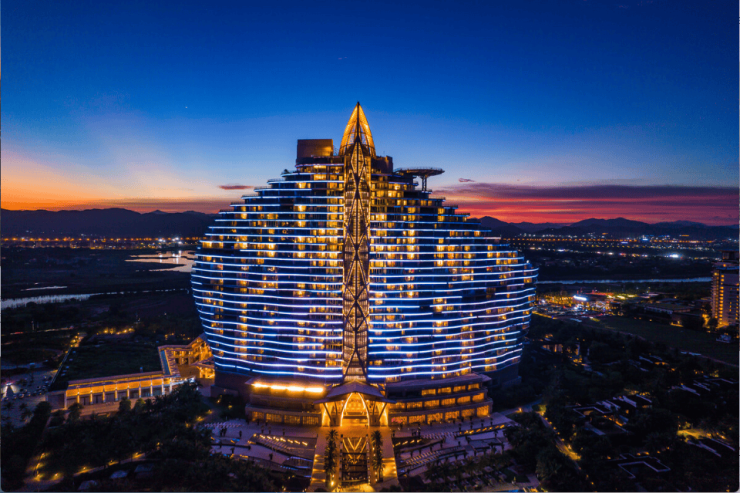 中国首家七星级酒店综合体亚特兰蒂斯,四季、威斯汀、艾迪逊、君悦、华尔道夫等全球知名酒店集团旗下的32家高端奢旅酒店均落座海棠湾。