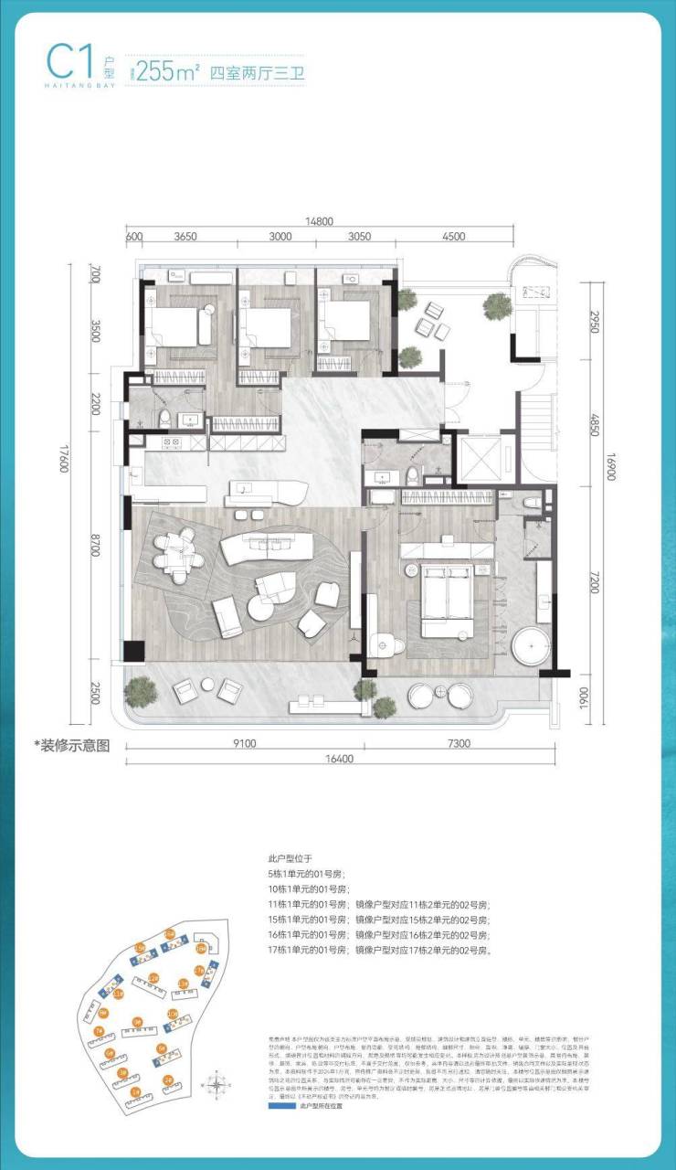 面积:建面约143-343㎡高端悦系奢邸3-4房