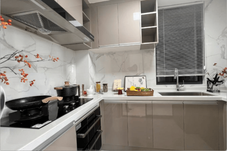 品牌铸铝装甲门(麦德姆)、断桥铝合金落地窗、电视背景墙岩板上墙。