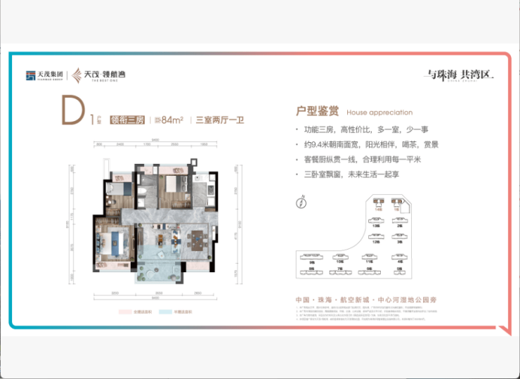 东临海岸线,尽享金湾情侣路的浪漫惬意;紧邻金湾中心河湿地公园,拥天然绿肺;府揽航空新城繁荣景象;坐享海、河、湿地、城四重景观。西部生态新城理想人居,享受高氧生态环境。