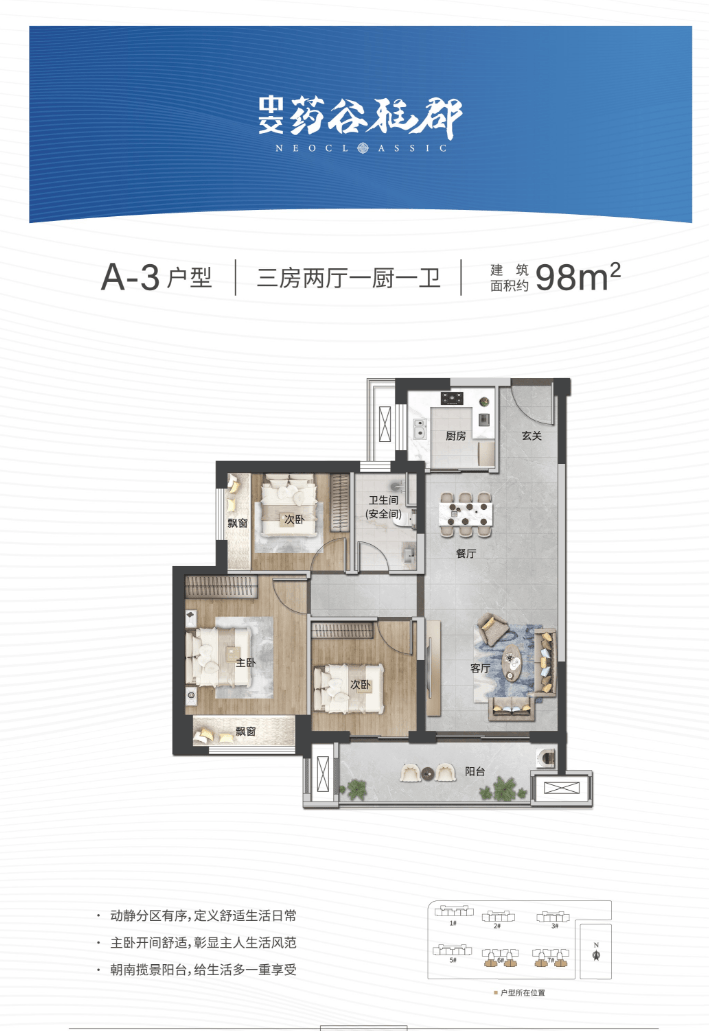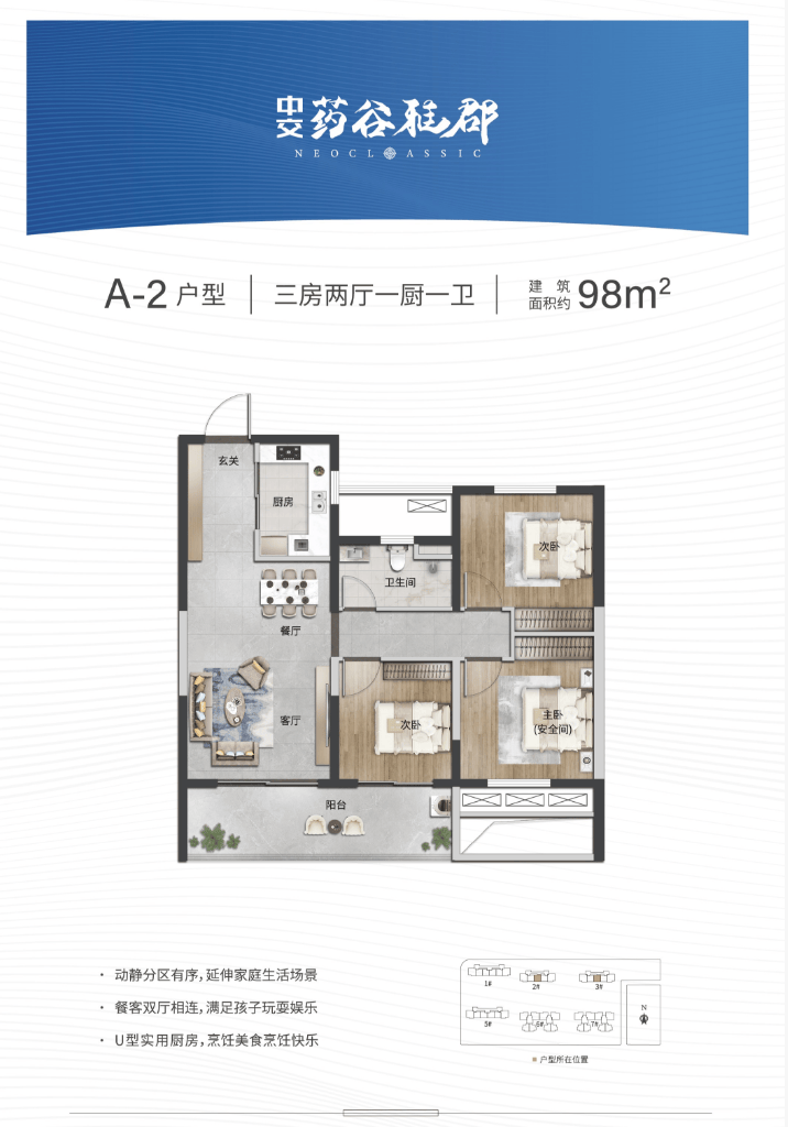 产品规划:建面约98-118㎡幸福三房