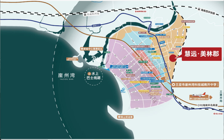 崖州科技城是海南自贸港13大重点园区之一,三亚“一心两翼”发展结构中西部核心。一心是三亚中央商务区,两翼分别为东翼的海棠湾,西翼的崖州湾科技城,形成科技产业集聚区和南海功能保障区的价值洼地。