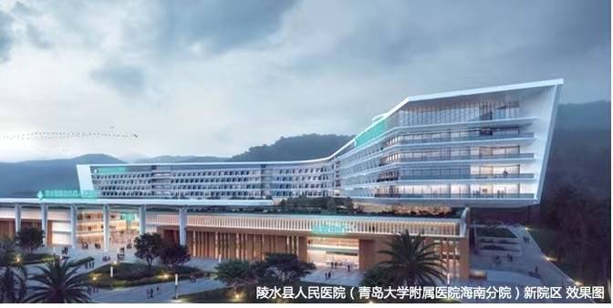 计划建成一座集医疗救治、健康体检、科研教学、预防保健,医养康复及公共卫生应急于一体、具有三级医院水平的现代化综合医院。建设总投资19亿元,总建筑面积约 20 万m²,设置床位数1000张,将依托青岛大学附属医院强大的学科品牌、人才技术优势,为周边群众提供更加个性化、一体化的高端诊疗服务。该项目一期为综合医院,一期规划用地128亩;二期主要以康复、理疗和慢性病诊疗为主,二期规划用地 70 亩,将依托陵水气候优势,发展康复、理疗等医疗项目,打造全生命周期的健康产业生态园。)