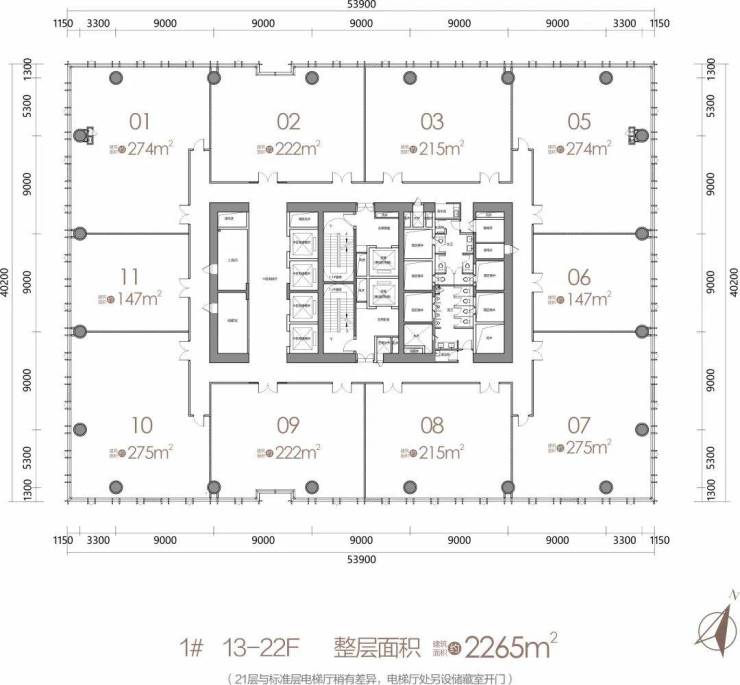 标准层建筑面积:约2200㎡