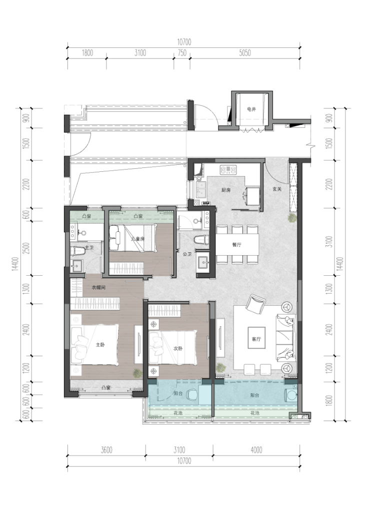 C户型 144㎡三房两厅两卫